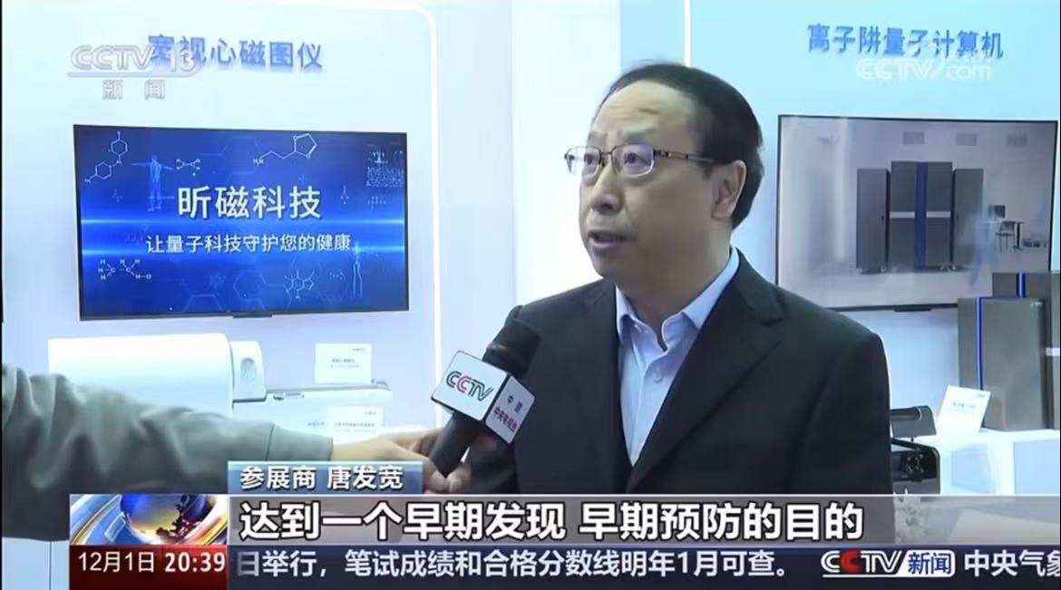 中央电视台CCTV新闻频道记者现场采访了昕磁科技创始人和董事长唐发宽先生,并且在《东方时空》栏目报道了量子科技如何改变大众生活,特别提到了量子科技赋能心血管疾病诊断,达到心肌缺血早期发现、早期预防的目的。
